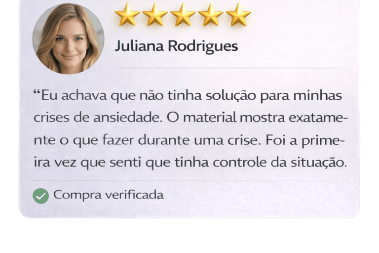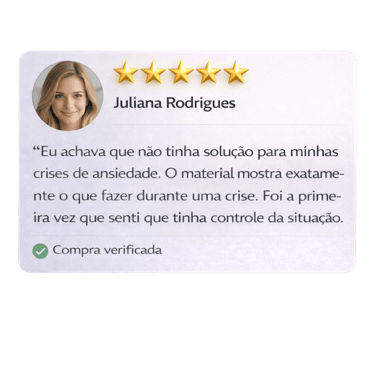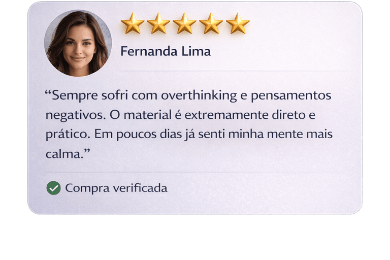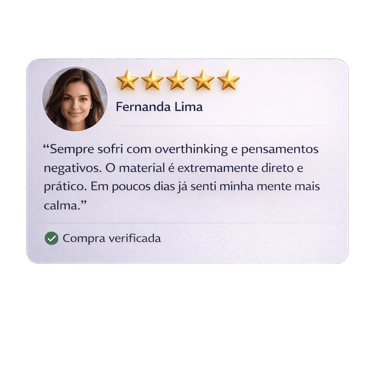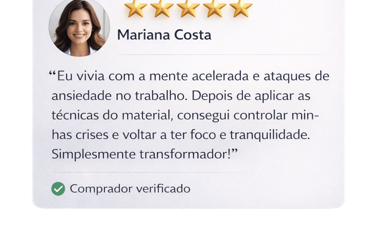 Descubra o método prático que já ajudou milhares de pessoas a controlar crises de ansiedade, parar o excesso de pensamentos e recuperar o equilíbrio emocional em poucos minutos por dia.